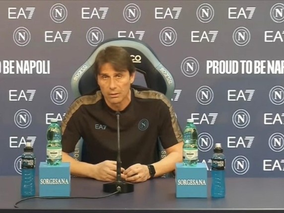4月19日宣 在那不勒斯对阵蒙扎的意甲联赛前,孔蒂出席了赛前新闻发布会,表达了一些对俱乐部现状的不满。