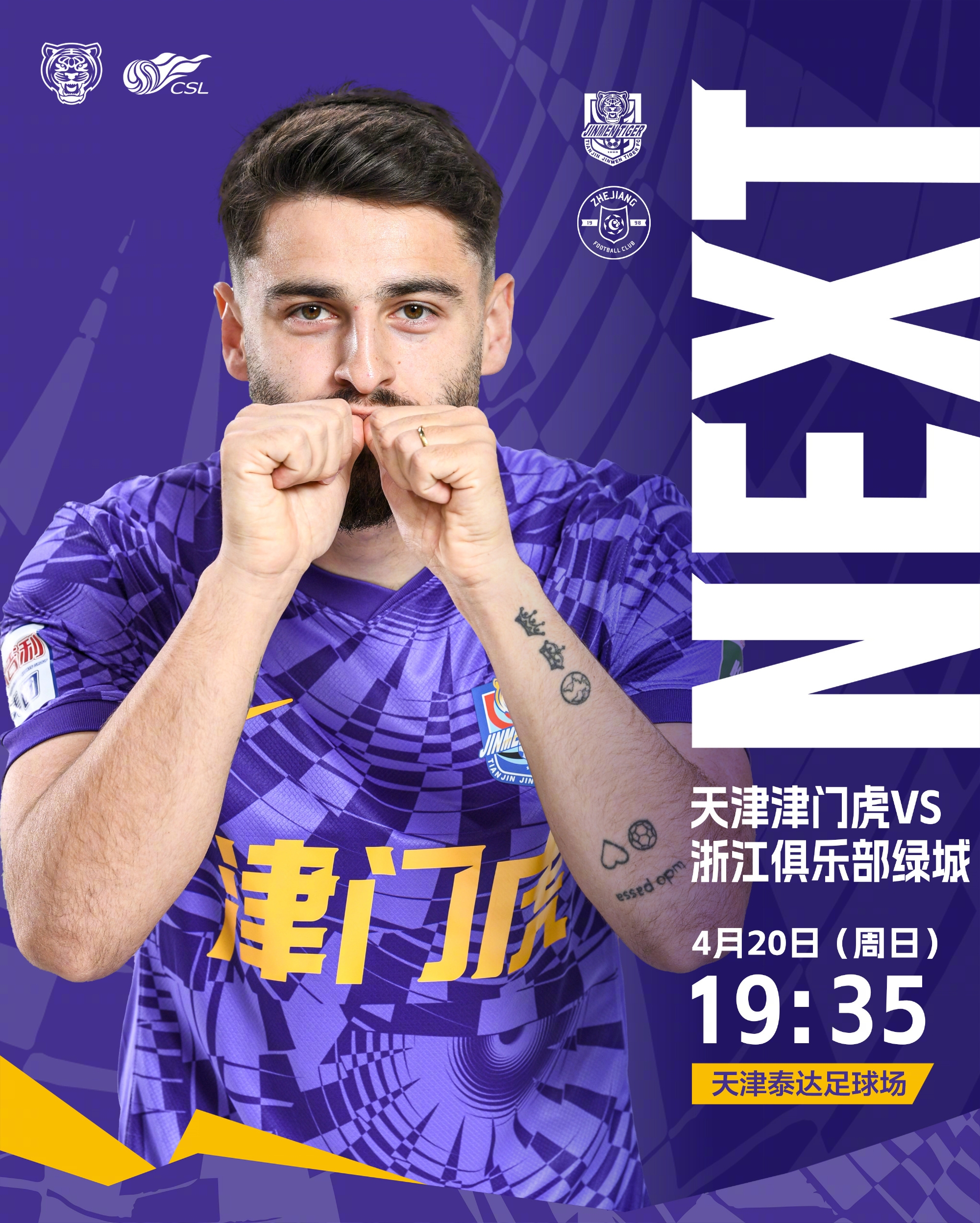 04月20日宣 北京时间今晚19点35分,中超第8轮,天津津门虎vs浙江,赛前首发阵容公布。