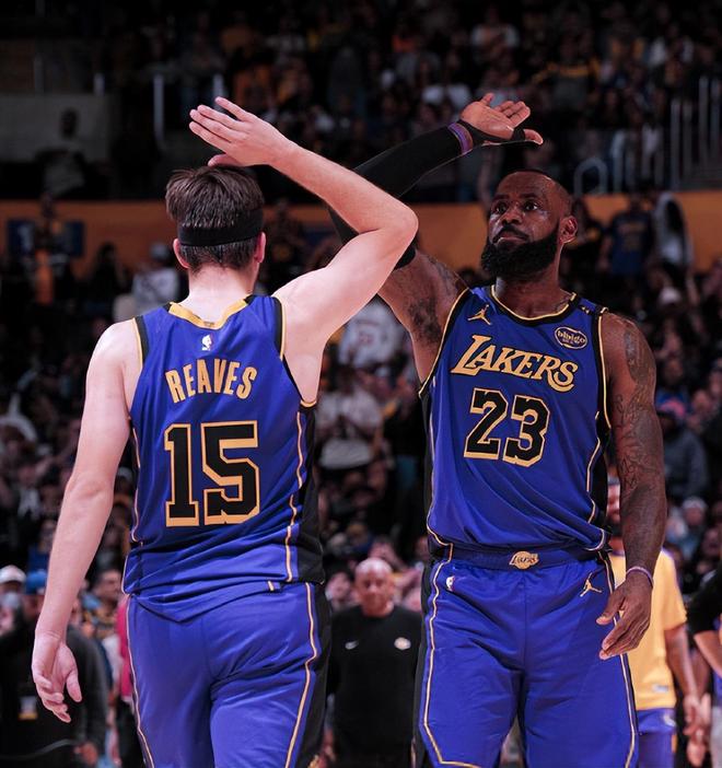 时间回到2021年,里夫斯参加选秀大会无奈没有一支球队抛出橄榄枝,最终以落选秀的身份与湖人队签下一份双向底薪合同。随后,凭借詹姆斯的鼓励以及帮助,还有他自己的努力,里夫斯逐渐崭露头角,一年一个脚印打出了极其出色的表现,最终在23年夏天获得了一份4年5400万美元的续约合同,最后一年为球员选项。