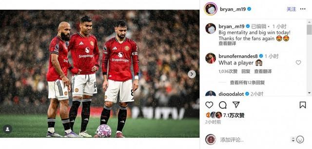 曼联前锋姆伯莫社媒晒出比赛照片,并写道:“今天展现强大心态,取得重要胜利!再次感谢球迷们的支持!”