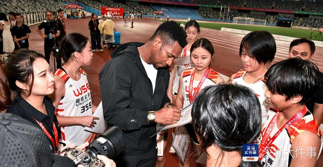 牙买加“飞人”布雷克现身深圳WSE赛场:希望更多人被发掘