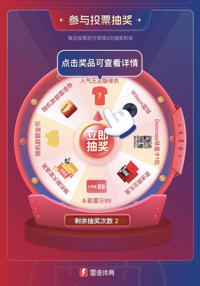 第二阶段中,老哥们每日有三张选票(第一选票5分,第二选票3分,第三选票1分),可以选出你心中最喜爱的三明球员并给予他们选票,最终得分前三十的球员将成为雷速NBA新赛季30大球员,排名第一的球员成为人气王,若你足够幸运,便可以得到他的NBA正品球衣一件。
