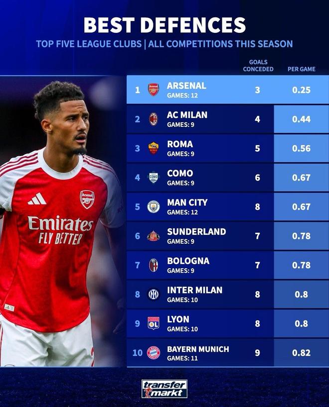 - 英超 | 豪门开赛至今12场比赛仅丢3球:阿森纳铜墙铁壁,争冠就在本赛季