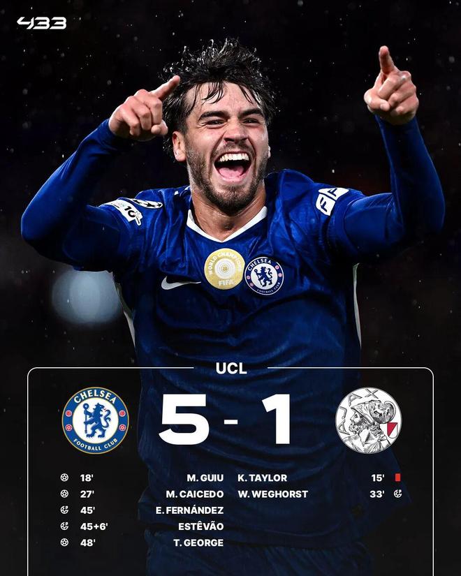 其中阿森纳4-0马竞、利物浦5-1法兰克福、切尔西5-1阿贾克斯、曼城2-0比利亚雷亚尔、纽卡3-0本菲卡、以及森林2-0波尔图,赢得都比较轻松。