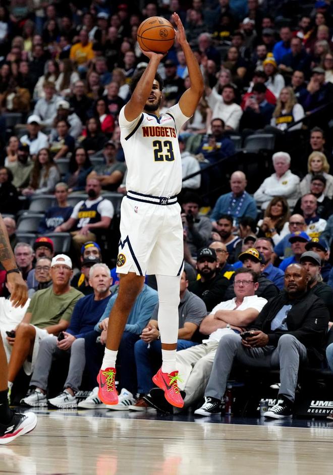 这场对攻大战中,掘金多位核心球员打出了现象级的个人表现,却无奈陷入 “空砍” 的尴尬境地。贾马尔・穆雷无疑是掘金进攻端最耀眼的明星,他在 36 分钟的出场时间里手感滚烫,投篮 20 中 13,其中三分球 8 中 5,罚球 7 中 6,高效砍下 37 分 4 篮板 7 助攻 1 盖帽的豪华数据,进攻端势不可挡却难挽败局。