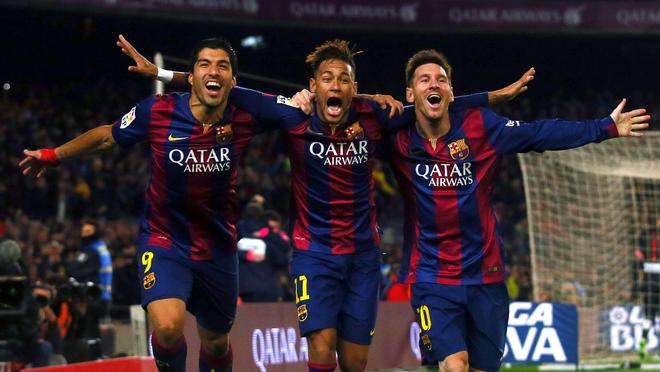 2015年1月11日,西甲第18轮,巴萨主场3-1击败马竞。第87分钟梅西破门锁定胜局,进球后梅西、苏亚雷斯、内马尔三人肩并肩奔跑庆祝的画面,成为MSN组合留给足坛最经典的庆祝瞬间。