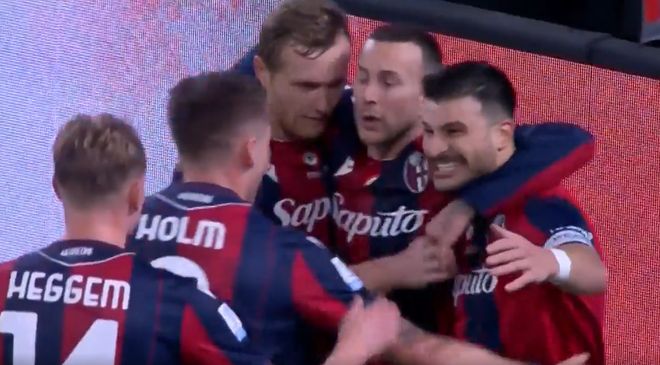 25年后国米又一次开场闪击,有意思的是这次他们也未能笑到最后。落后的博洛尼亚随后展开猛烈反扑,第21分钟,博洛尼亚右路压上,连续精妙的短传配合,奥尔索利尼倒三角处回传,贝尔纳代斯基点球点处获得很好的机会,只是他兜射打的太正,门将马丁内斯稳稳将球扑住。第31分钟,博洛尼亚左路快速反击,比塞克回防头球解围时出现低端失误,竟然将球顶到自己手上。主裁亲自观看VAR后吹了点球,奥尔索利尼操刀主罚一蹴而就,博洛尼亚1:1扳平比分。