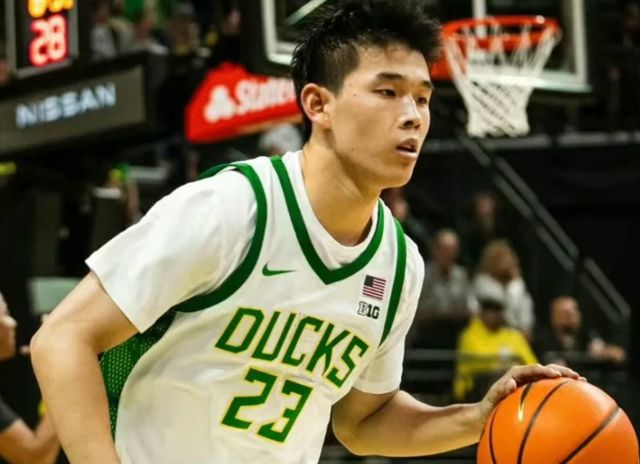 比赛还剩不到180秒时,身穿俄勒冈大学球衣的中国后卫,连续持球拔起、出手命中,三分钟内疯狂输出11分。