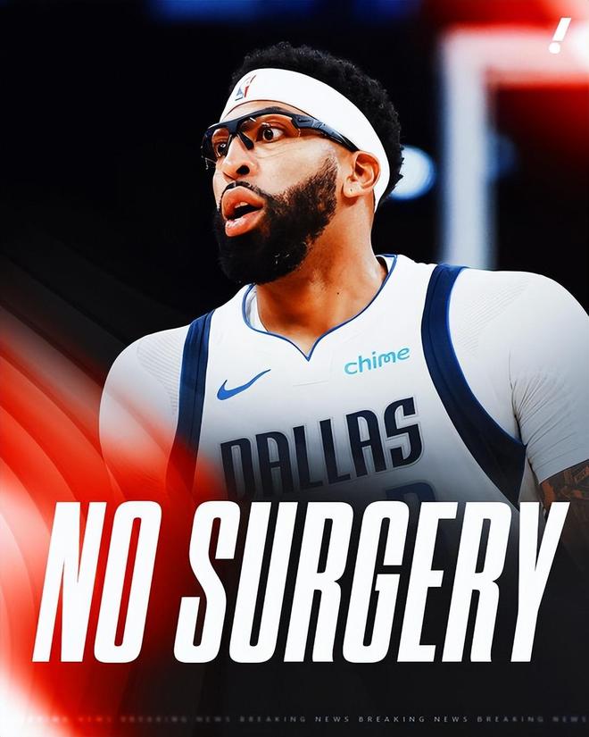NBA记者Nichols表示,独行侠仍在尝试交易戴维斯。就在另一位专家告知达拉斯,戴维斯的左手无需接受手术的消息传出后不久,这一动态随即曝光。需要注意的是,戴维斯将在约六周后接受复查 —— 如果届时他已被交易,这次复查就将由他的新球队来安排。